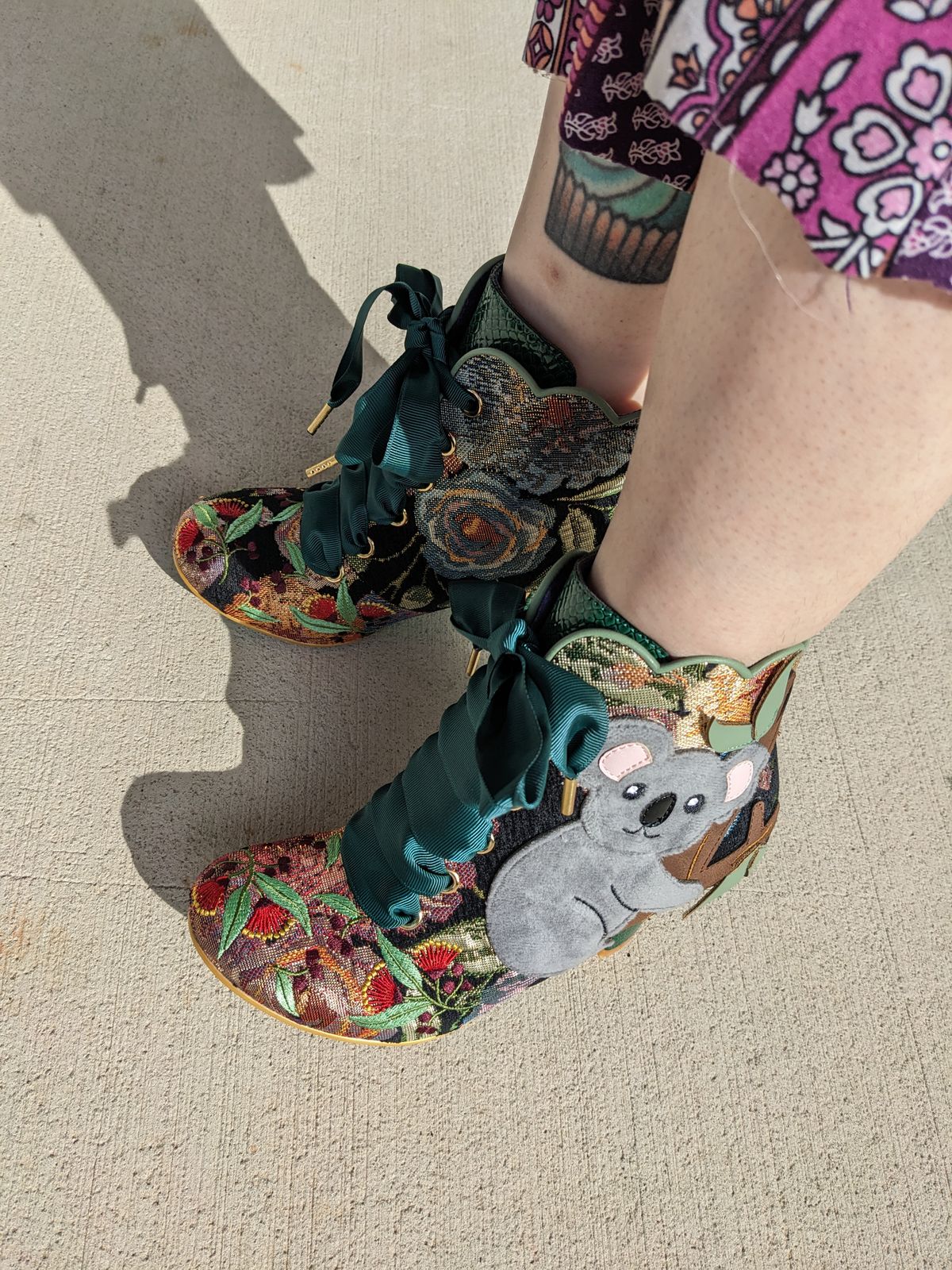 Feeling koala-cute? These fuzzy friends are here to help you give your look a bit of a refresh! A stunning floral brocade fabric is decorated with a cute little koala sitting in classic koala pose - on a branch! Fastened with stunning rust red ribbon laces, and a striking scalloped top edge, these beauties are sure to be fast faves!
